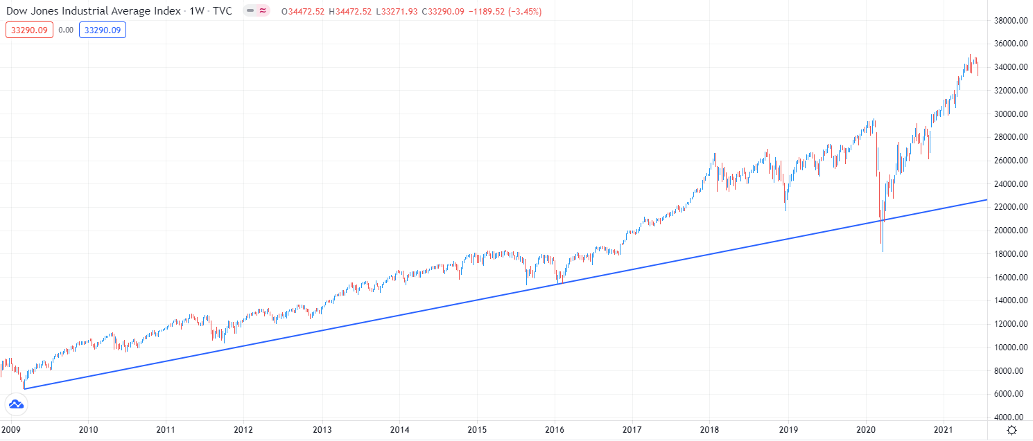 The Dow Jones Industrial Average was easily the biggest loser among the three primary US indices. The airlines, industrial, financial, real estate and building materials stocks were the biggest casualties of the COVID pandemic, leading the index to a massive 38% slump in February-March 2020. Although some sectors partially rebounded in Q4 2020, leading to new ATHs in December, the DJI lags the S&P 500 and the Nasdaq. Interestingly, the “old economy stocks” are making a comeback this year on the back of the massive vaccination drive leading to the gradual opening up of the economy.