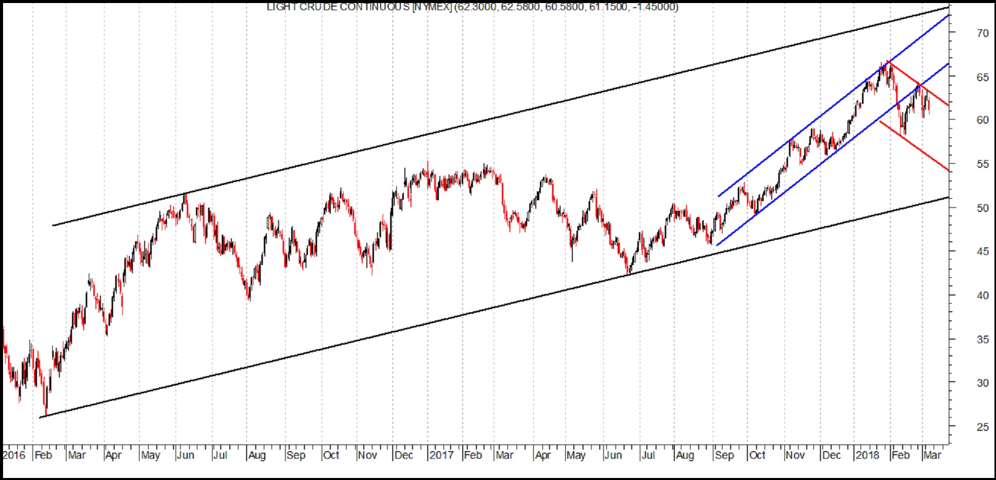 WTI Crude is up about 4 percent this year after topping $66 a barrel earlier in January, the highest since December 2014. Since then, prices have been oscillating in the $58- 64 per barrel for more than a month now. Although the long-term primary uptrend remains intact, crude prices have broken out from the medium-term bullish channel and prices are likely to extend lower in the near-term.